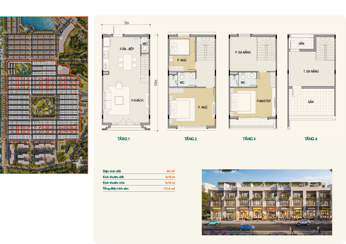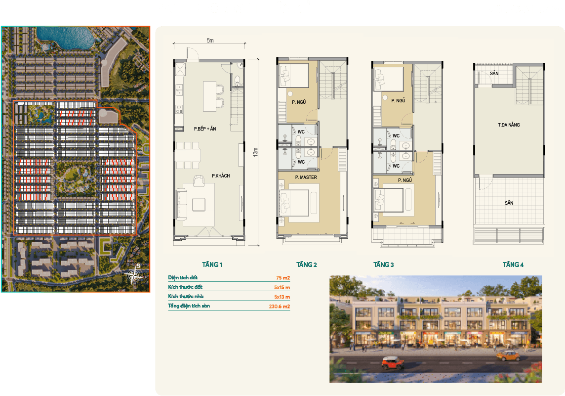 - Diện tích: 60–75–90m²