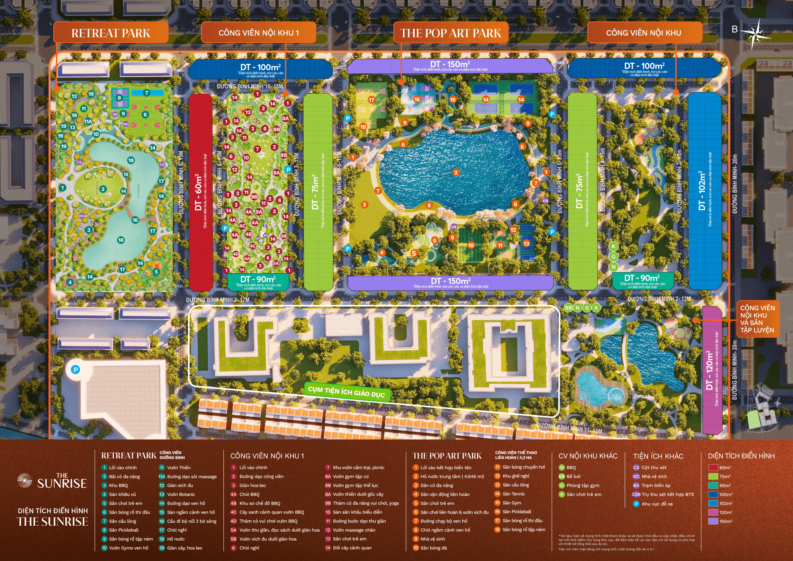- 100 sân thể thao đa năng: bóng đá, tennis, cầu lông, gym ngoài trời