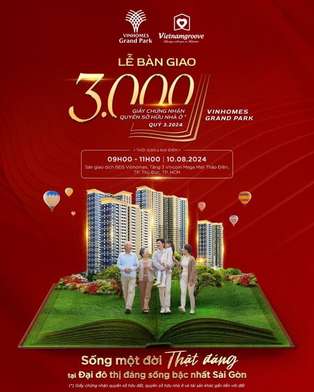 Bàn giao 3000 giấy chứng nhận quyền sở hữu – Quý III 2024 Ngày 10/08 vừa qua, Vinhomes Grand Park chính thức bắt đầu trao 3000 giấy chứng nhận quyền sở hữu trong Quý III 2024 cho cư dân. Với phương châm luôn đặt quyền lợi cư dân lên hàng đầu, sự kiện này không.